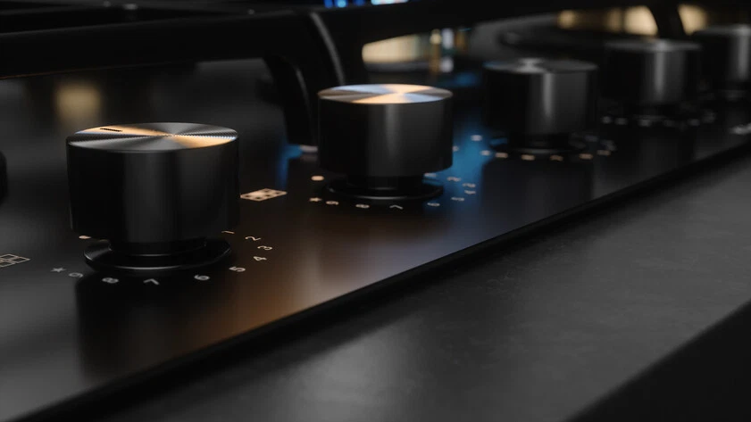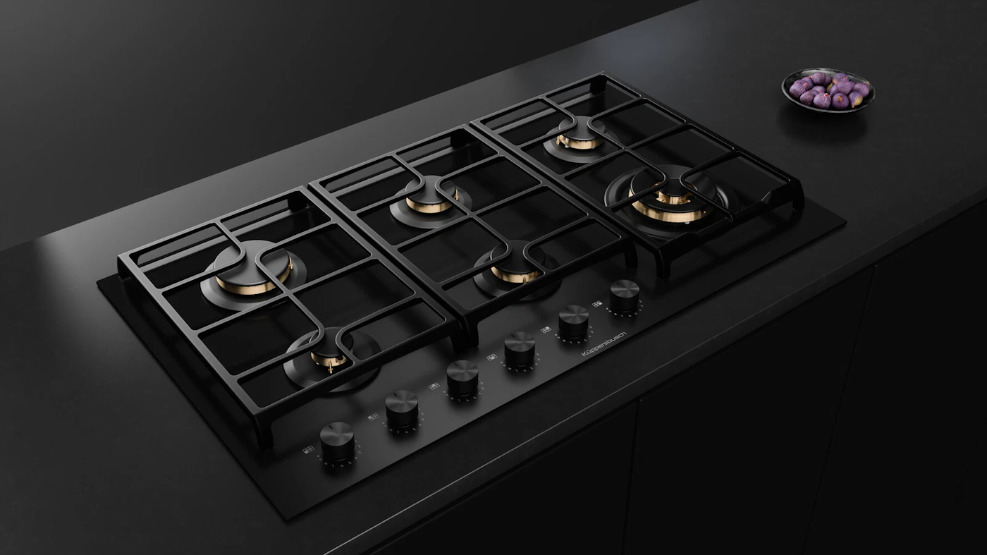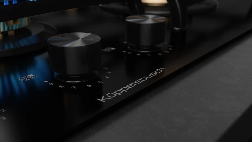 Газовая варочная панель Kuppersbusch KG 9551.0 SR-E5 сочетает стильный дизайн с высокими техническими характеристиками. Черная стеклянная поверхность с чугунными решетками и управлением с поворотными переключателями KnobControl позволяет легко контролировать процесс готовки. Мощные горелки с диапазоном мощности от 1 до 4.2 кВт обеспечивают гибкость в приготовлении пищи, а полная защита гарантирует безопасность.