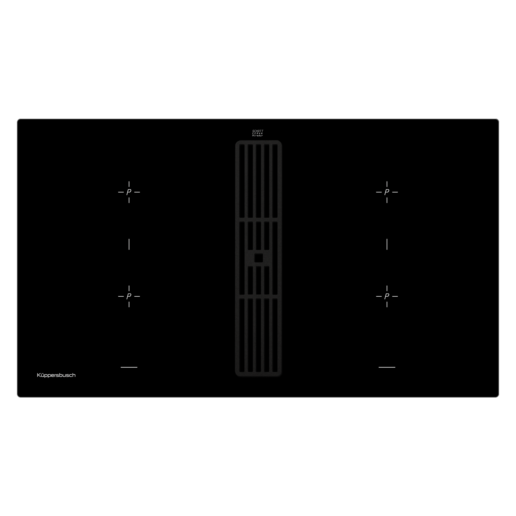 Индукционная варочная панель с вытяжкой Kuppersbusch KMI 9850.0 SR обладает уникальным дизайном и навигацией. Данная модель оснащена как сенсорными клавишами, индикаторами, так и поворотными регуляторами. Ручки устанавливаются на лицевую сторону столешницы, как у традиционной кухонной плиты. Они отвечают за активацию разнообразных режимов, а также за регулировку степени нагрева конфорок и скорости вытяжки. Дисплей отображает выбранные настройки, время на таймере и индикацию остаточного тепла. С ней можно не опасаться ожога.