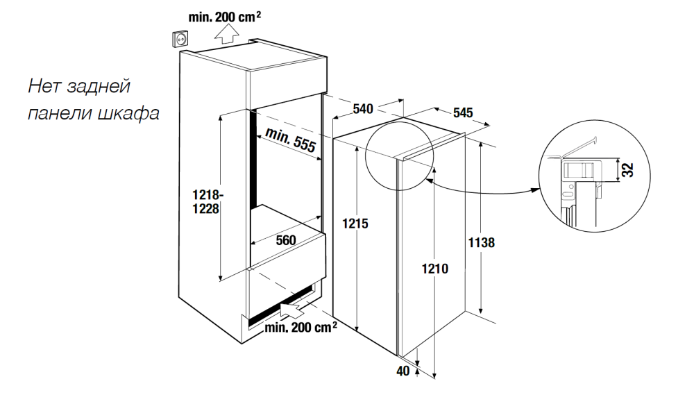 Вес (кг)65Вид встраиванияв колоннуВысота (см)121.5Габариты (В х Ш х Г), см0Глубина (см)54.5Дверной упорсправаИз них переставляемых по высоте (шт.)4Кабель для подключения (м)2.15Класс энергопотребленияFКоличество дверей1Количество камер1Количество компрессоров1Количество полок из ударопрочного стекла (шт.)5Количество полок на двери (шт.)3Количество ящиков для овощей и фруктов (шт.)1Контуров охлаждения1Крепление фасадаскользящееМощность подключения (Вт)70Общий полезный объем (л)198Объем холодильного отделения (л)198Освещение в холодильной камереLEDПеренавешиваемая дверьестьРазмеры ниши для встраивания (В х Ш х Г), см121.8-122.8 х 56 х 55.5Регулировка температурымеханическаяРешётка для бутылокестьРучкабез ручкиСила тока (А)10Система охлаждения в холодильном отделениикапельнаяСистема размораживания в холодильном отделенииавтоматическаяТип управлениямеханическоеТипвстраиваемыйУровень шума (дБ)35ЦветбелыйЧастота (Гц)50-60Ширина (см)54Энергопотребление (кВтч в год)125Единица измеренияшт -