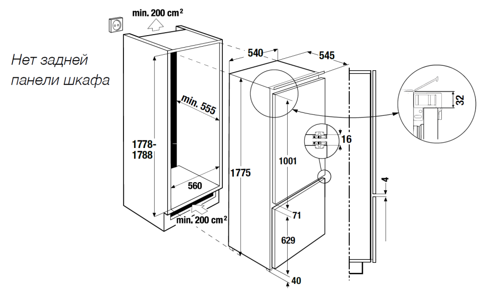 Вес (кг)65Вид встраиванияв колоннуВремя хранения в случае отключения, ч13Высота (см)177.5Габариты (В х Ш х Г), см0Глубина (см)54.5Дверной упорсправаДисплейцифровойЗона свежестиестьИз них переставляемых по высоте (шт.)3Кабель для подключения (м)1.9Класс энергопотребленияEКоличество дверей2Количество камер2Количество компрессоров1Количество полок из ударопрочного стекла (шт.)3Количество полок на двери (шт.)4Количество ящиков в морозильном отделении (шт.)3Количество ящиков для овощей и фруктов (шт.)2Контуров охлаждения2Крепление фасадажесткоеМощность подключения (Вт)125Общий полезный объем (л)254Объем замораживания (кг/24 ч)3.5Объем морозильного отделения (л)69Объем холодильного отделения (л)185Освещение в холодильной камереLEDПеренавешиваемая дверьестьРешётка для бутылокестьРучкабез ручкиСигнализация неисправностейакустическаяСигнализация открытой дверцыакустическаяСила тока (А)10Система охлаждения в морозильном отделенииNoFrostСистема охлаждения в холодильном отделенииNoFrostСистема размораживания в морозильном отделенииавтоматическаяСистема размораживания в холодильном отделенииавтоматическаяТипвстраиваемыйУровень шума (дБ)38Функция суперзамораживанияFastFreezeФункция суперохлажденияестьЦветбелыйЧастота (Гц)50-60Ширина (см)54Энергопотребление (кВтч в год)224Единица измеренияшт -