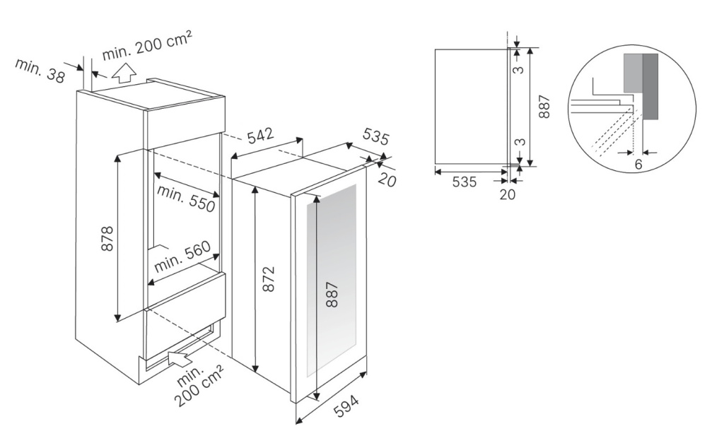 Вид встраиванияв колоннуВместимость, бутылок вина56Высота (см)88.5Глубина (см)54.5Диапазон температур в верхней секции, °C5-18Диапазон температур в нижней секции, °C5-18ДисплейцифровойКоличество дверей1Количество камер1Количество компрессоров1Количество полок4Контуров охлаждения2Материал полокдеревоНапряжение (В)220ОсвещениесветодиодноеОсобенности дверизащита от УФ лучей черное стеклоПеренавешиваемая дверьестьРегулировка температурыэлектронная с кнопкамиСигнализация неисправностейакустическаяСигнализация открытой дверцыакустическаяСила тока (А)10Уровень шума (дБ)44Цветчерное стеклоЧастота (Гц)50Ширина (см)59Ширина тумбы для встраивания (см)60Энергопотребление (кВтч в год)145Единица измеренияшт -
